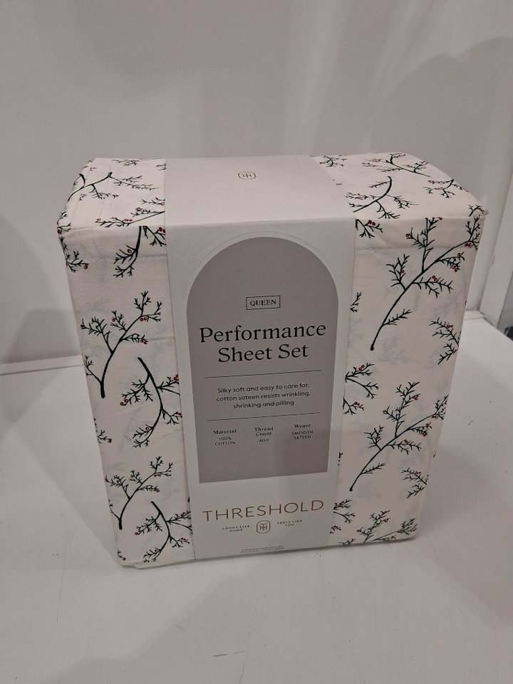 4PC Threshold Thread Count Holiday Performance Sheet Set - QUEEN - OFF WHITE