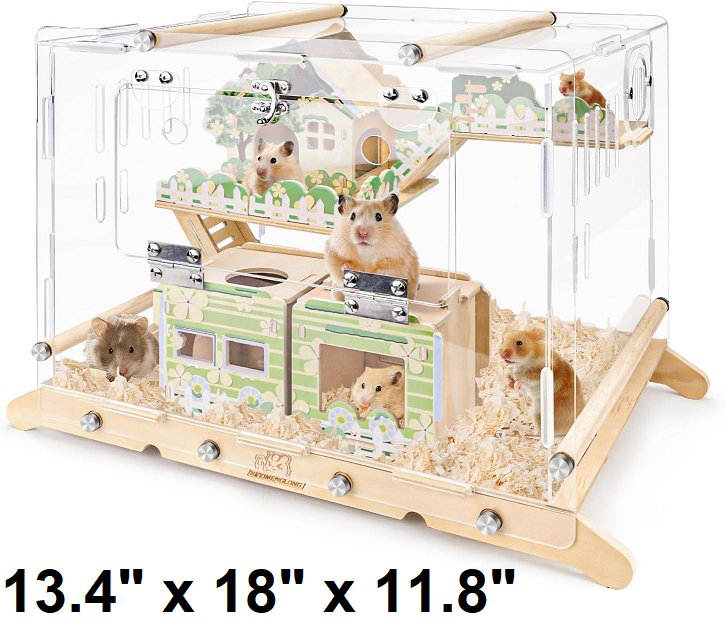 Acrylic hamster cage with hideouts and tank - 13.4" x 18" x 11.8" - Clear/beige/wood grain