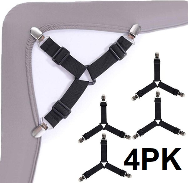 4PK 5STAR UNITED SHEET FASTENERS , ELASTIC STRAP WITH NICKEL CLAMP, FITS ALL BED SIZES - BLACK