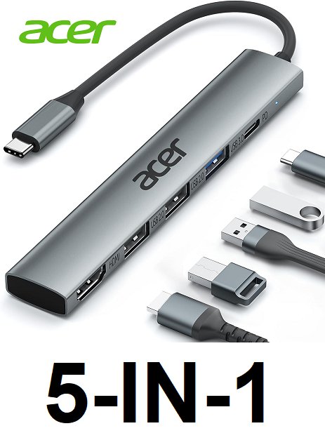 Acer USB C Hub, 5-in-1 4K USB C to HDMI Adapter - 100W Power Delivery, Fast USB 3.0 - black (model odk4c0)