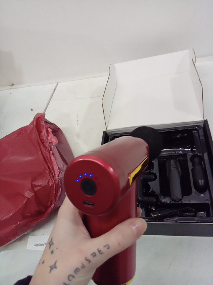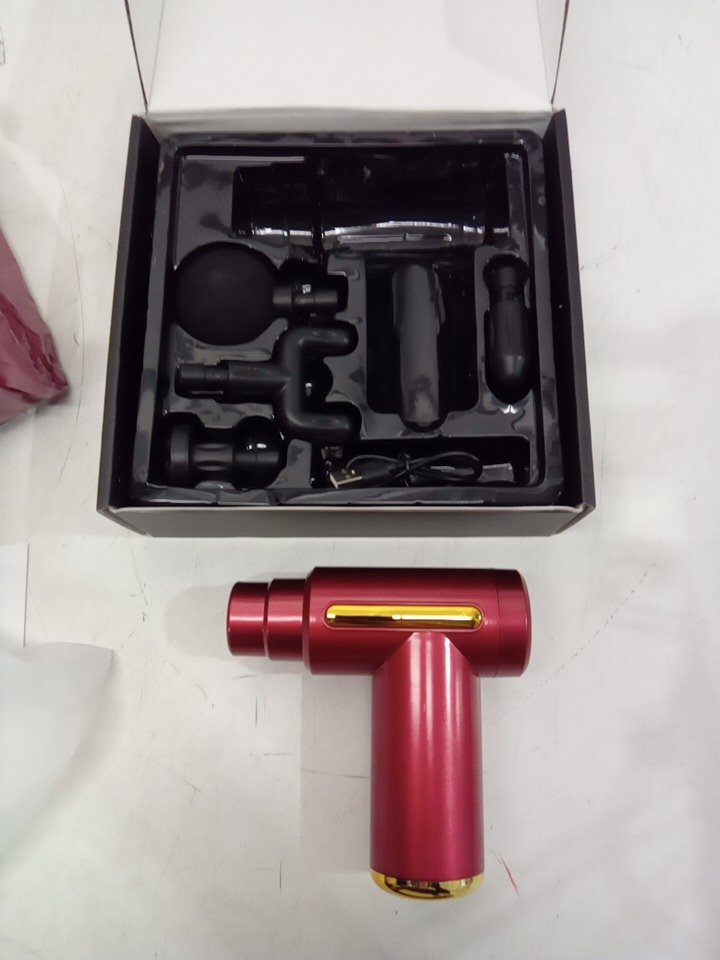 Percussion Massage Gun with 4 Attachments - red\gold - (model: cx-156)