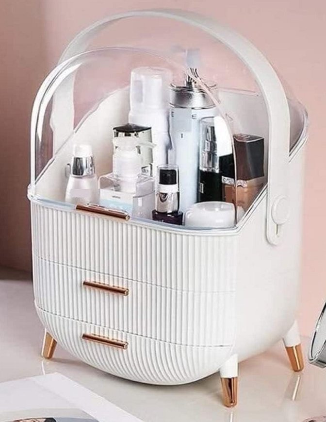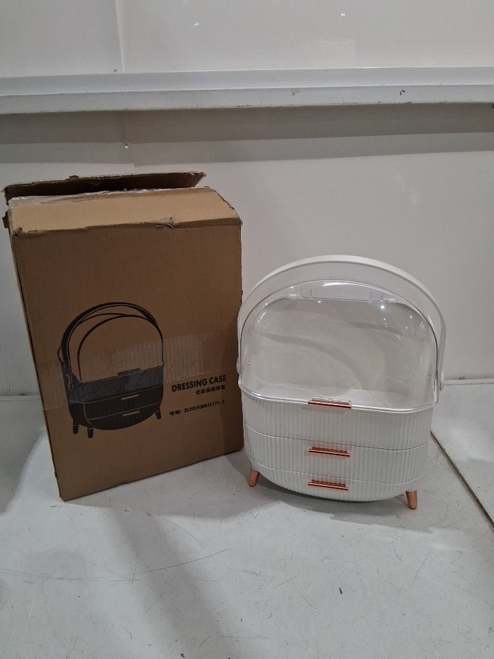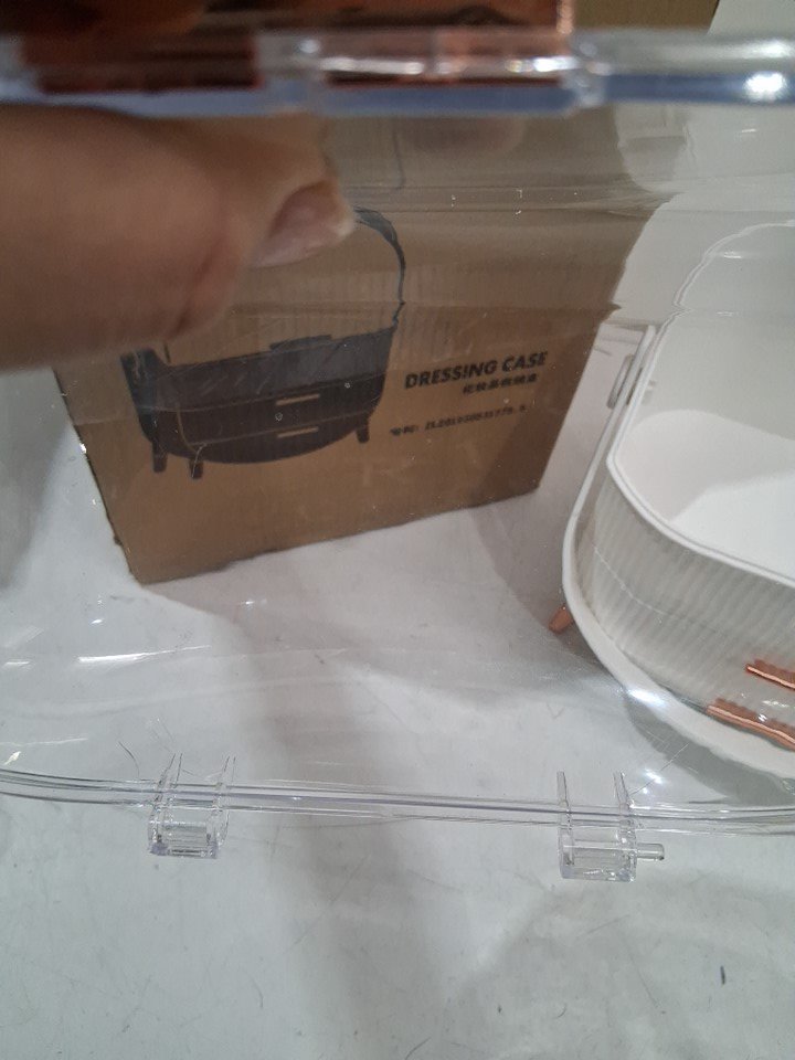 please note one piece that holds the lid to the organizer in broken off, however the item can still function. There is also some dust in the drawers from previous use