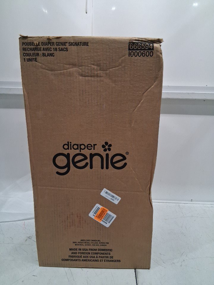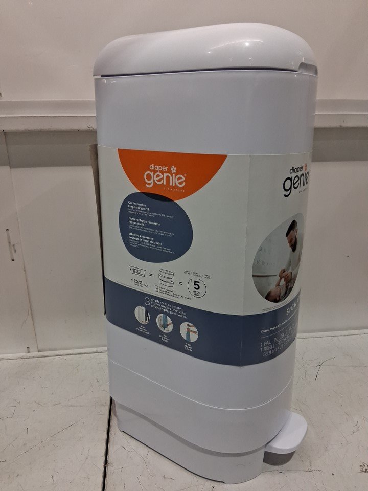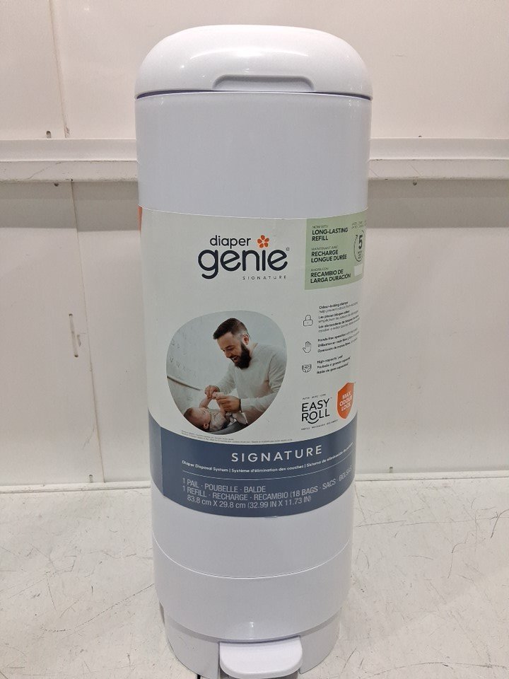 Diaper Genie Signature Pail Includes 1 Easy Roll Refill with 18 Bags Holds Up to 846 newborn-Sized Diapers Per Refill - 33" - white - (Model: 1000600)