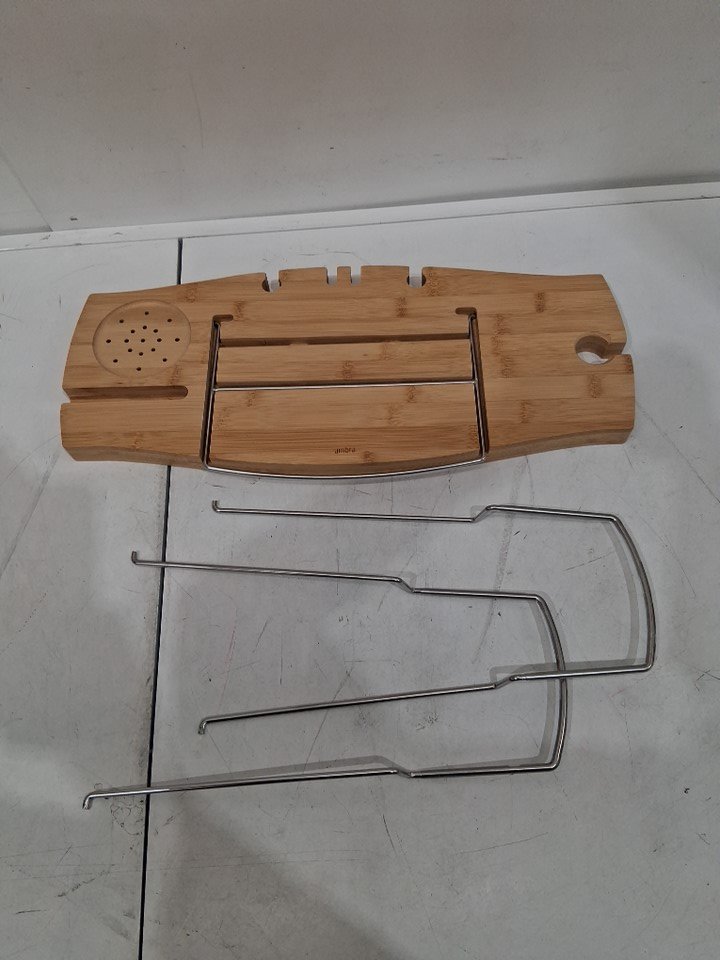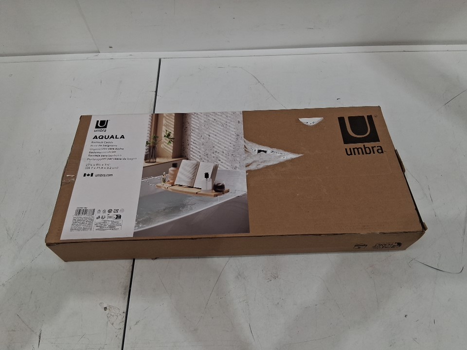 UMBRA AQUALA BATH CADDY - 27.25" x 8.5" x 1.25" - BAMBOO/CHROME (MODEL: 020390-390)