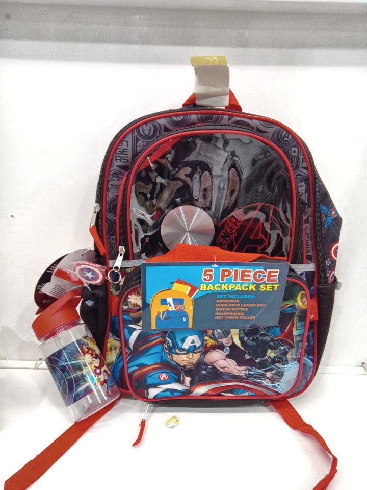 5PC kids marvel avengers backpack set - waterbottle /lunch bag and headphones
