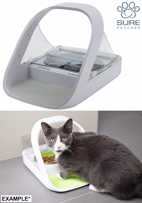 SURE PETCARE SUREFEED MICROCHIP PET FEEDER - AUTOMATIC FEEDER - WHITE/GREY (MODEL: MPF001)