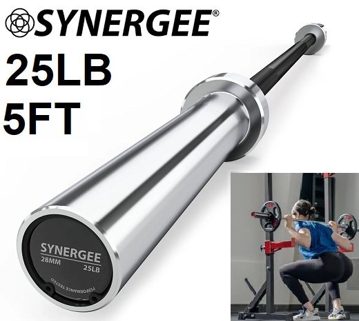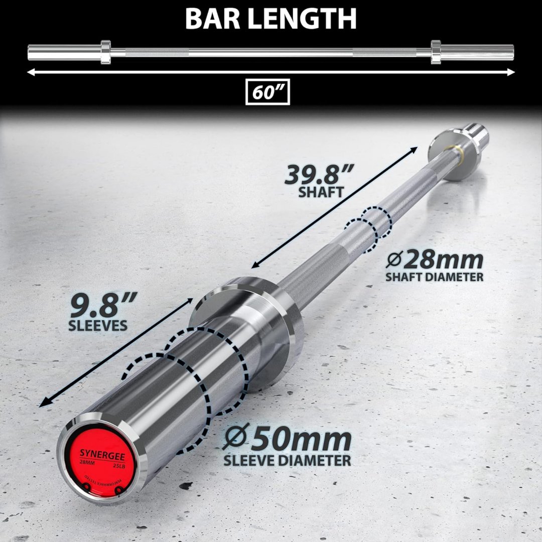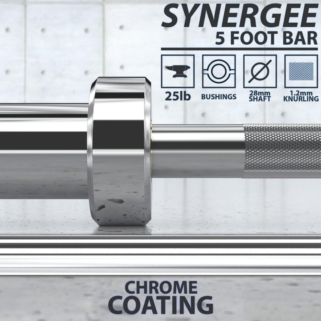 SYNERGEE 2" WEIGHTLIFTING EXERCISE BARBELL - 25LB - 5ft - Black Phosphate