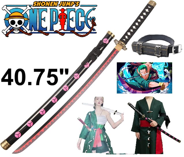 Forgemith One Piece Bamboo Anime Cosplay Roronoa Zoro Shusui replica Sword and sheath with small belt - 40.5" - Black/Pink/Purple