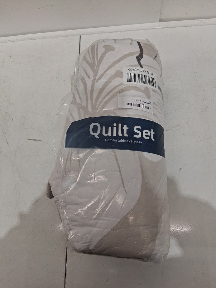 3PC DJY Quilt Boho Bedspread with 2 Pillow Shams Set - 104" X 90" KING SIZE - Blue Floral Pattern