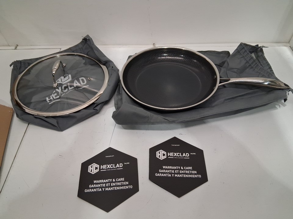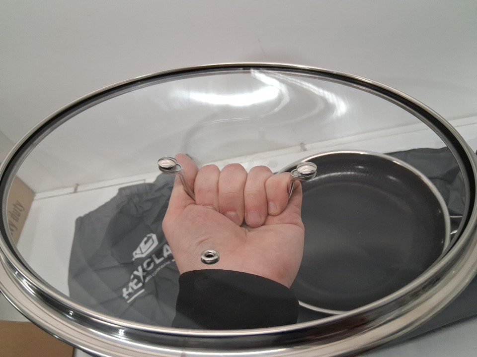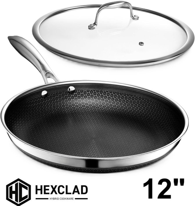 HExclad hybrid premium nonstick cooking pan with glass lid - 12" - black/silver