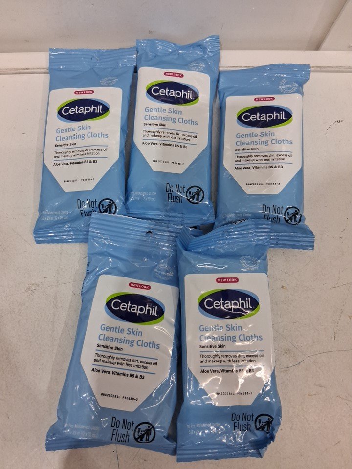 5 (10PK) CETAPHIL Gentle Skin Cleansing Face and Body Wipes Cloths (50 wipes total)