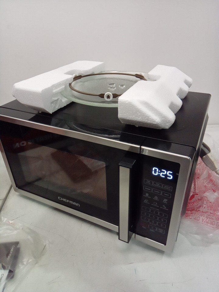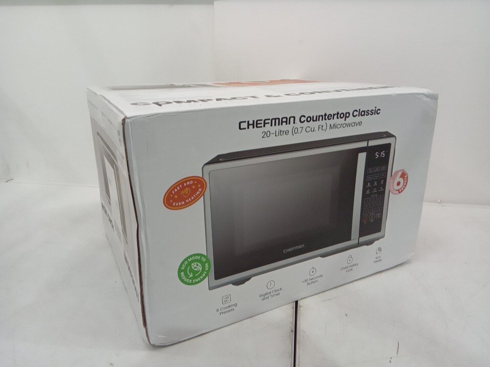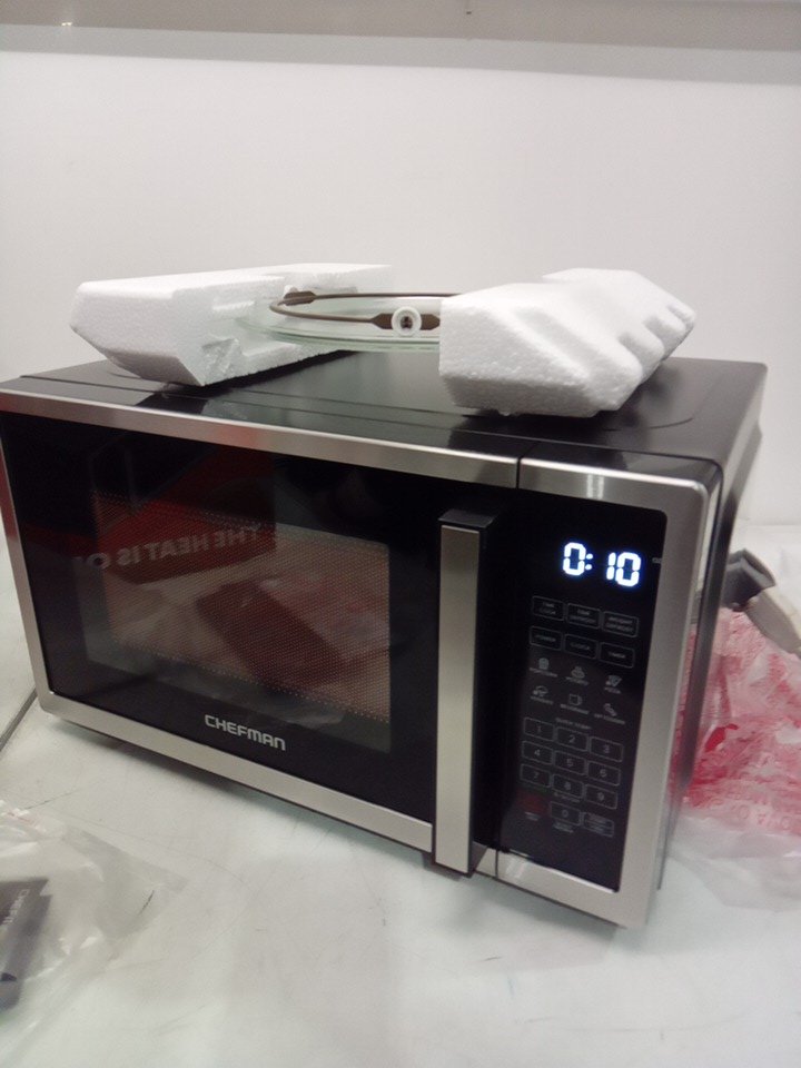 CHEFMAN 10 power levels eco mode child safety lock countertop microwave - 0.7 cu.ft - stainless steel (model:‎RJ55-SS-7-ck-ca))