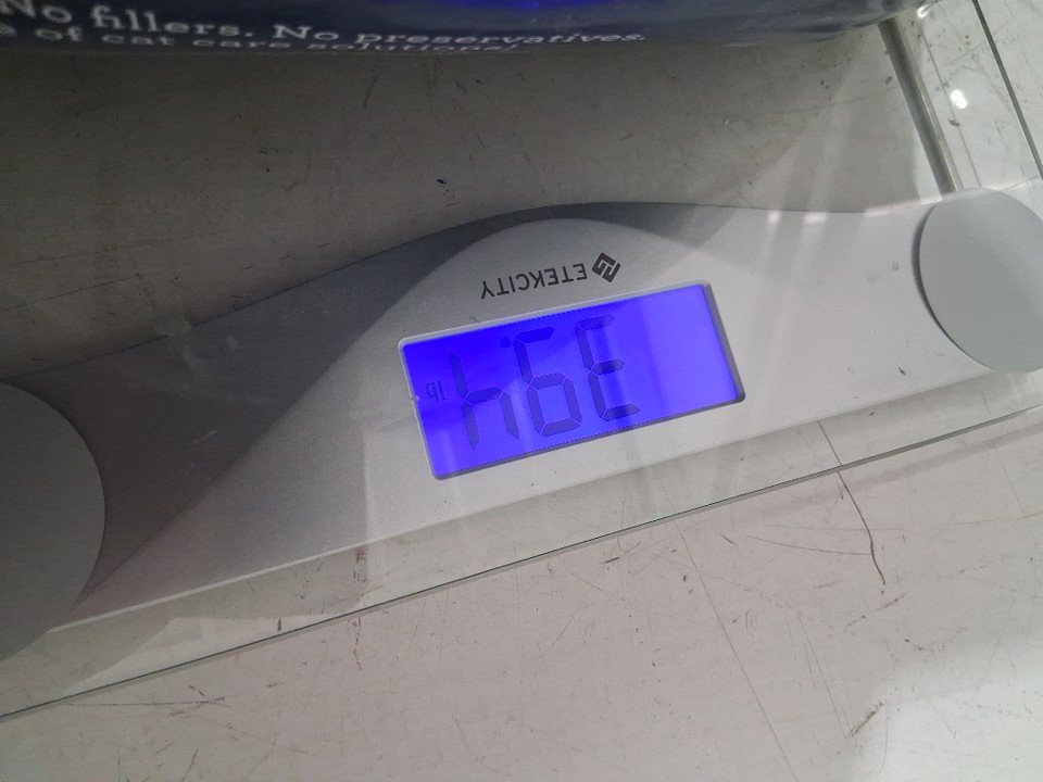 Bad had a hole in the corner and leaked some out. Now is 39.4lb total. see photos