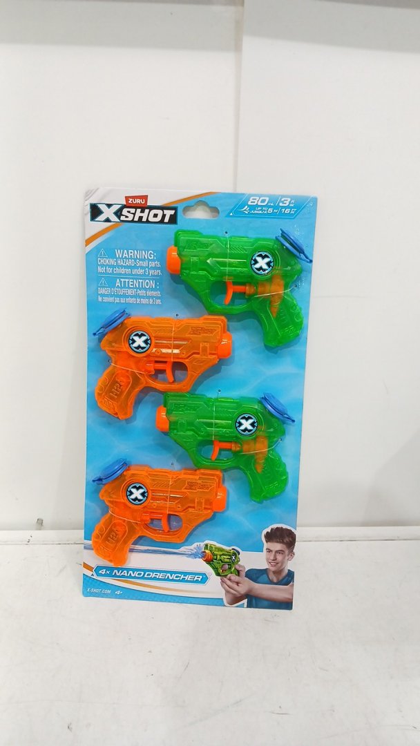 4pk zuru xshot nano drencher water guns - 80ml water tank - up to 16ft - orange/green