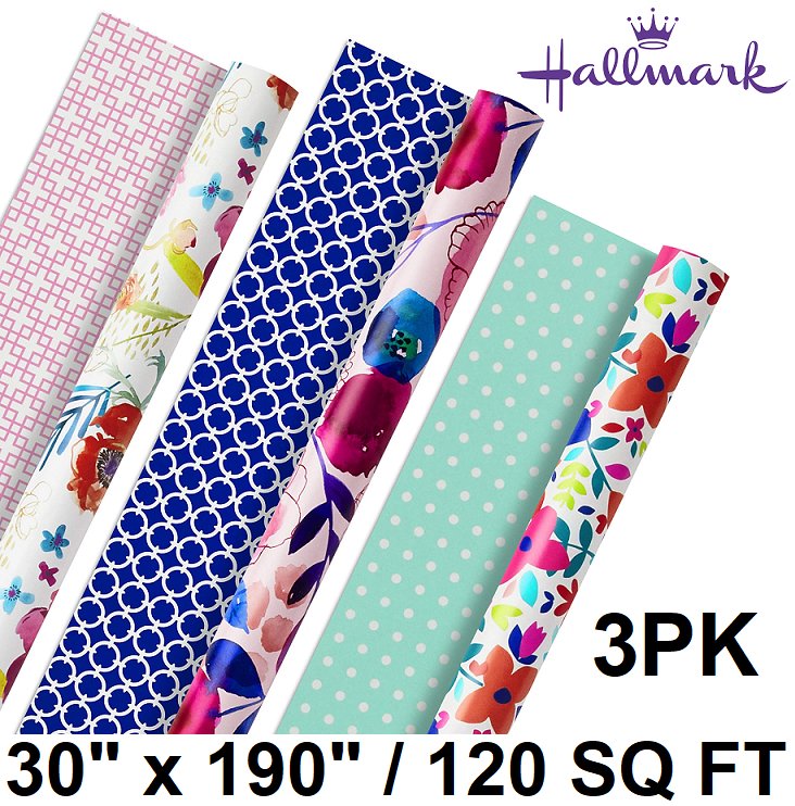 3PK HALLMARK TWO SIDED REVERSIBLE GIFT WRAPPING PAPER, 30" X 190" (120 SQ FT EACH) - MULTI (MODEL: 5EWR2433)