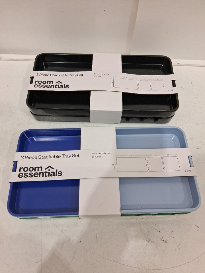2 (3PC) Room Essentials Stackable Melamine Decorative Trays - BLUE / GREEN / BLACK