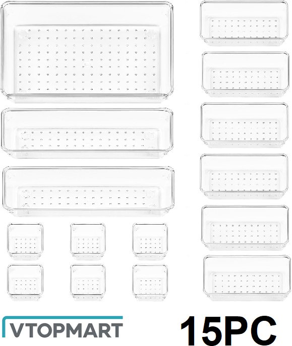 15pc vtopmart multi-use drawer organizers - clear