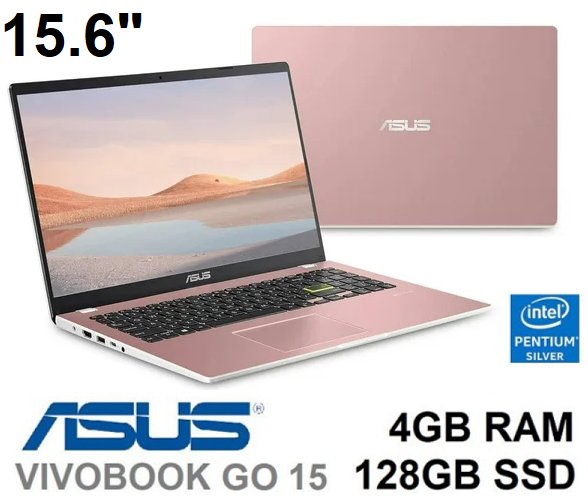 ASUS VIVOBOOK GO 15 LAPTOP - Intel Pentium Silver N6000 - 4GB RAM, 128GB SSD - 15.6" - rose pink (MODEL: L510KA-wh21-p)