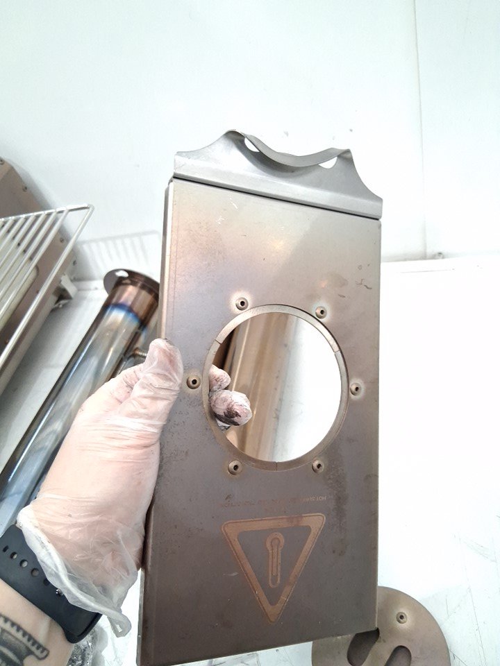 item has been used and has black charred residue on it - some dents on the item and a part is bent - see photos