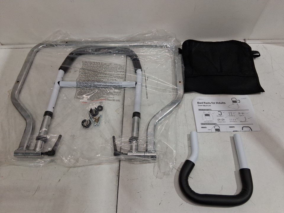 HuaQue Bed Side Rails with Adjustable Heights & Storage Pocket for Seniors, Fit Any Size Bed - up to 450LBS/200KG - white/black (model:hq-002)