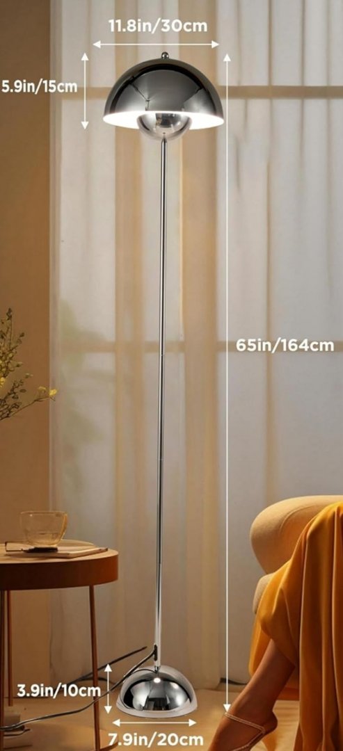 COSYLUX Modern Tall Standing Floor Lamp - 11.8" x 11.8" x 65" - Chrome (Model: ‎B0DM666F8Q)