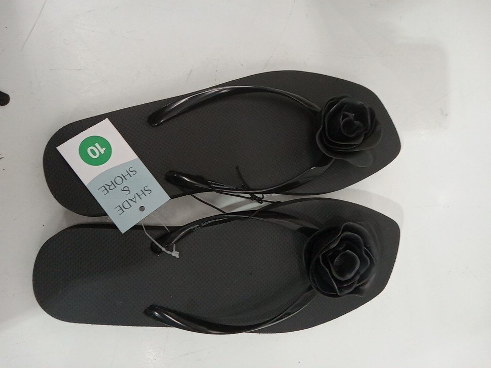 women's shade & shore Rosette Flower Flip Flop Sandals - 10 - black