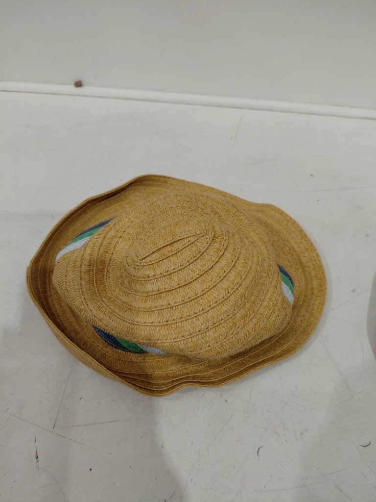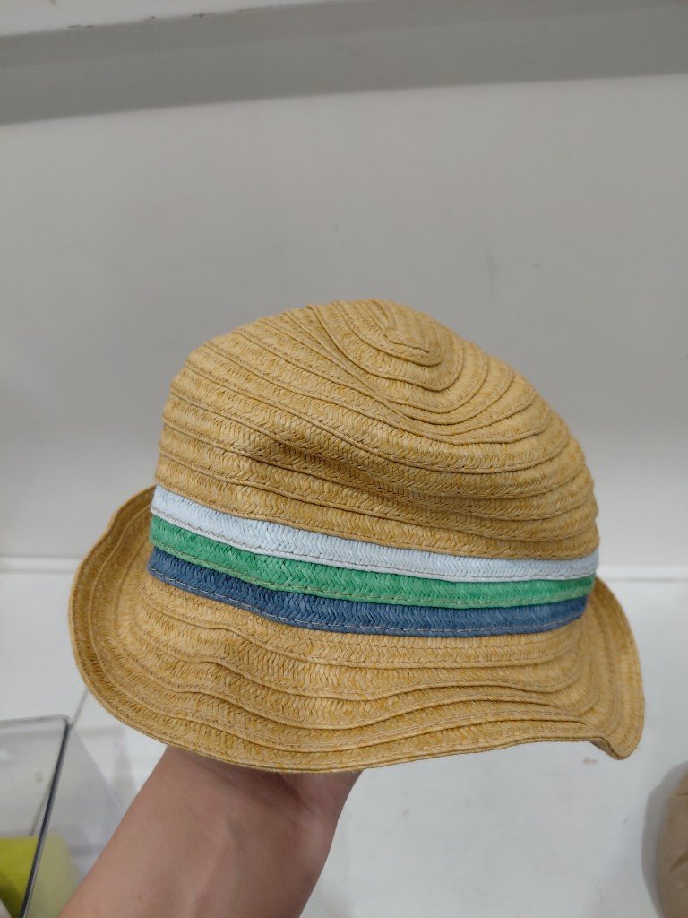 toddler boys straw fedora hat - osfm - natural/green/blue
