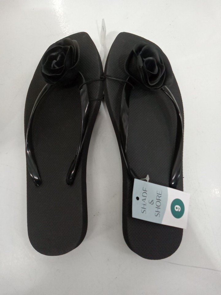 women's shade & shore Rosette Flower Flip Flop Sandals - 9 - black