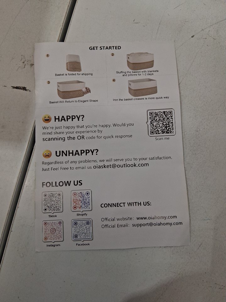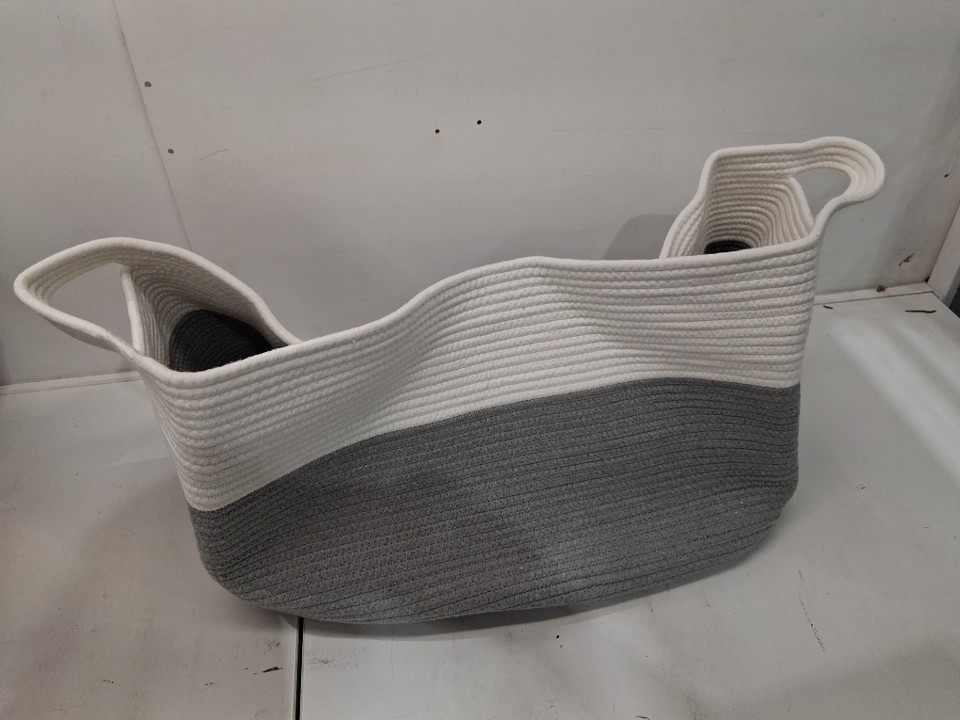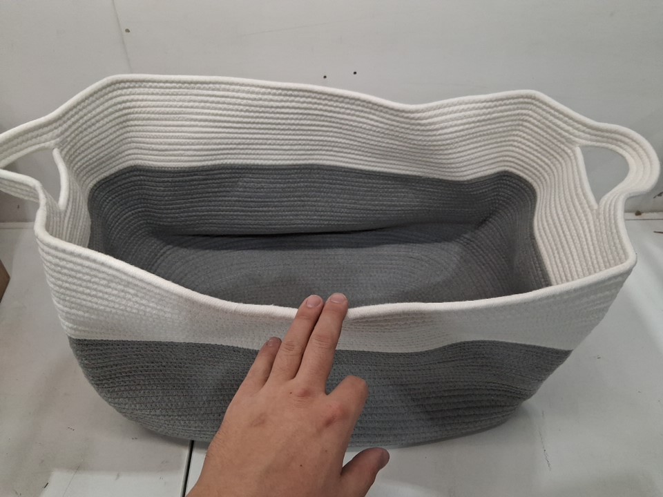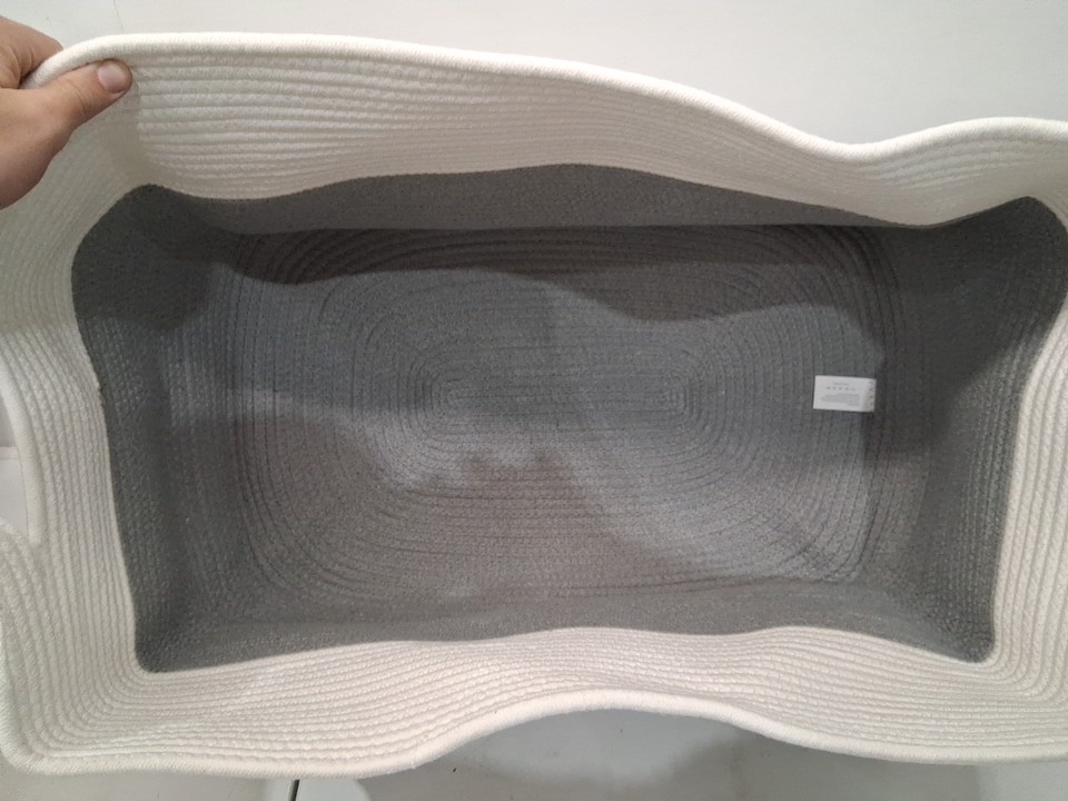 OIAHOMY LARGE WOVEN BASKET WITH HANDLES - 22" X 17" X 12" - WHITE/GREY