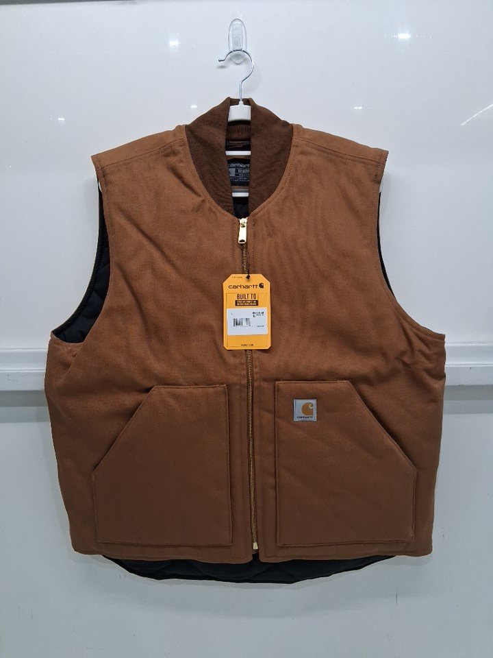 MENS CARHARTT RELAXED FIT FIRM DUCK INSULATED RIB COLLAR VEST - LARGE - BROWN (STYLE: 0V0001-M)