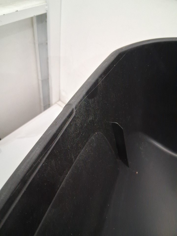item has some minor marks from previous use, also has dust and a small scratch in the inside shown in pictures from previous use