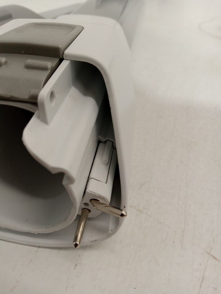 There is dust/debris in parts of the item as a result from previous use. Item tested and working. During our inspection/testing we found that the storage station (#13) is missing and the extension pole (#8) that is connected to the floorhead (#9) has bent pins, which need to be straightened out in order for the the lighting and floorhead to properly work. See attached photos.