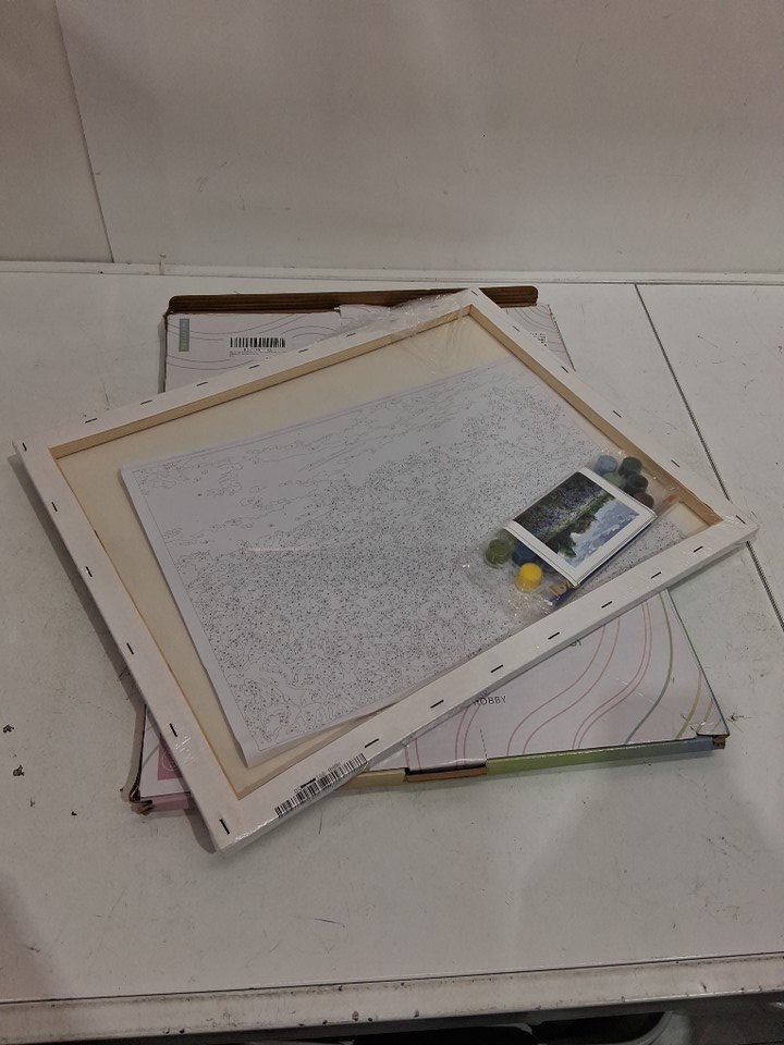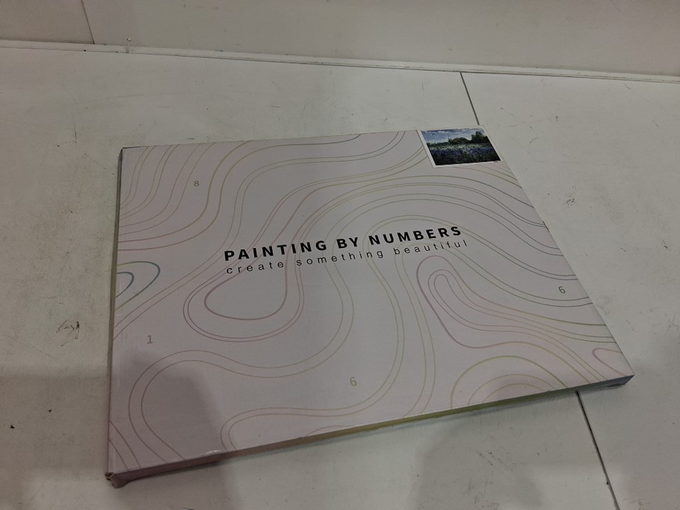 aBeauty Acrylic Paint by Numbers Countryside field and Blue Flowers framed wooden canvas DIY - 16" x 20" - (Model: DZ147)