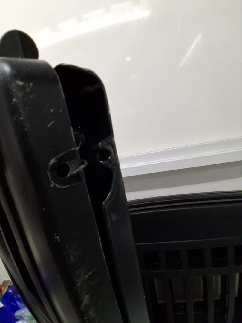 signs of use due to scuffing on bottom, appears there is a manufacturing defect on one panel causing an incomplete mold. This would not affect function as it is so small.