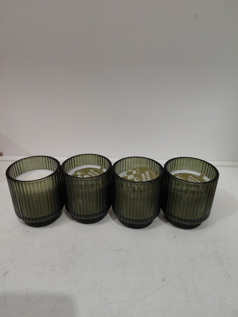 4 Footed Ribbed Glass Scented Candle - 3.9oz - green - forest mist