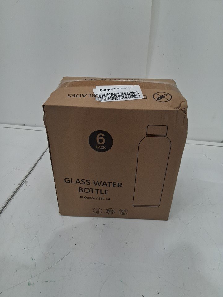 6PK GLASS WATER BOTTLES - 18OZ - CLEAR