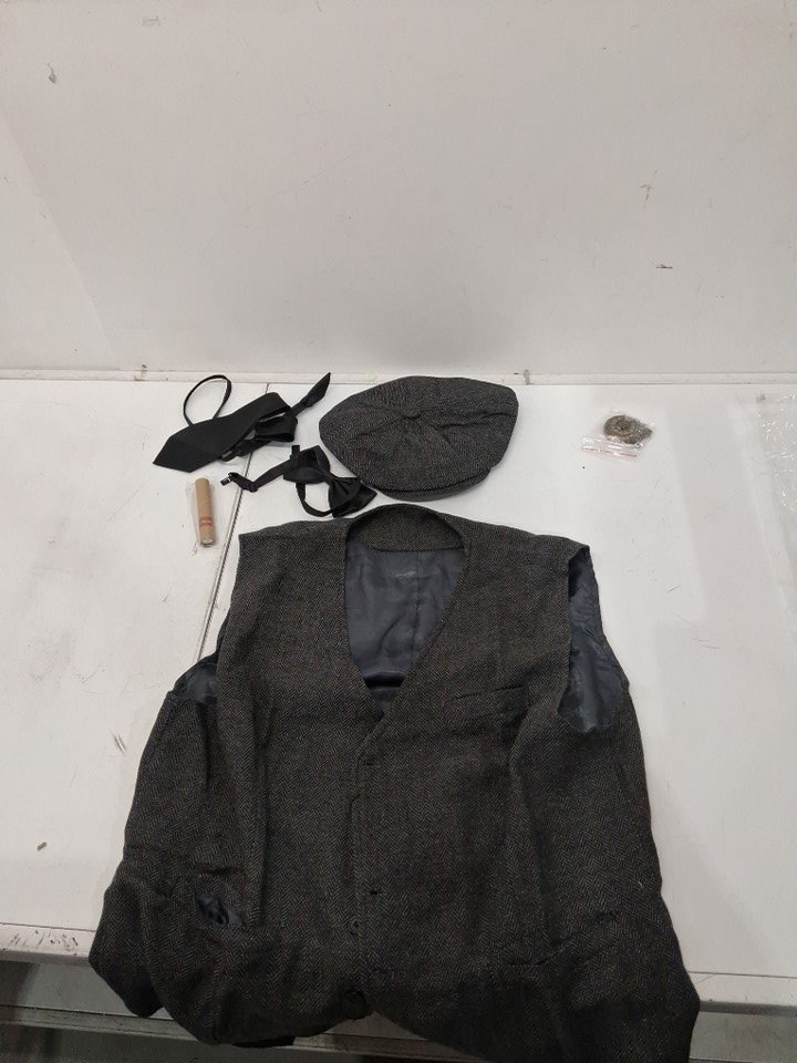 6pc men's 1920s gatsby costume set - includes vest, tie, bowtie, hat, pocket watch and cigar - large - black/stripe