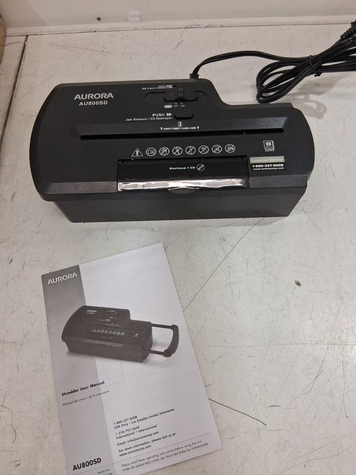 Aurora Professional Strip Cut Paper/CD/Credit Card Shredder Without Wastebasket / 8-Sheet Strip-Cut No Basket - black (model:AU800SD)