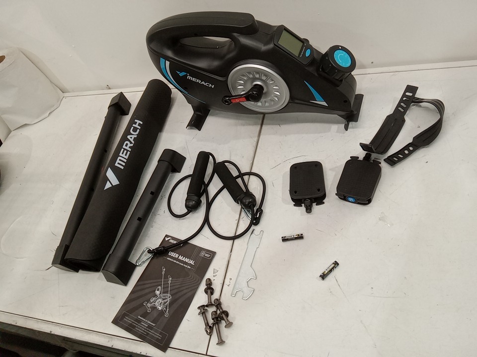 MERACH Under Desk Bike Pedal Exerciser with 2 Resistance Bands & Non-Slip Mat - black/blue - (model: mr-s04)