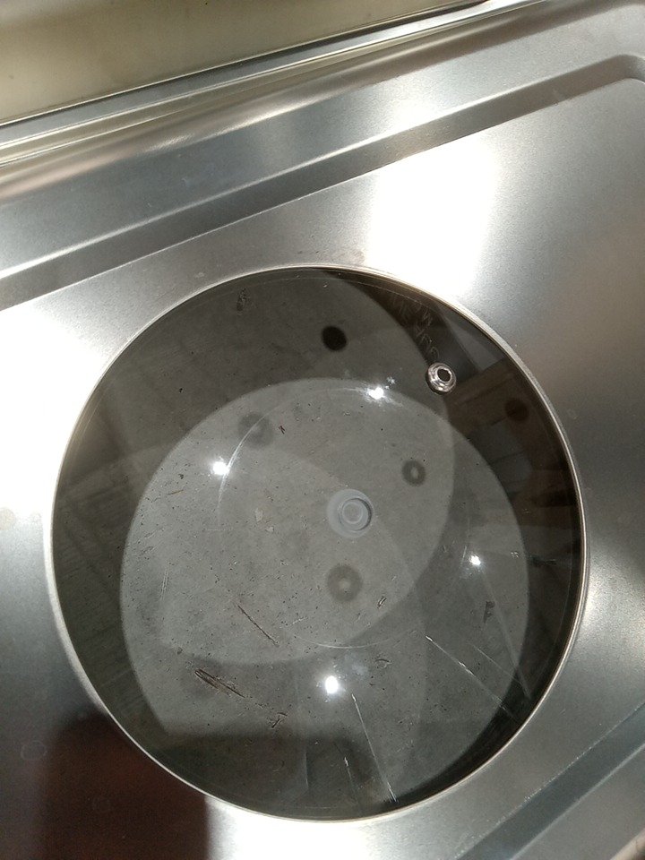some marks present indicating prior use, and the item is missing the four knobs which goes on top of the lid, see photos.
