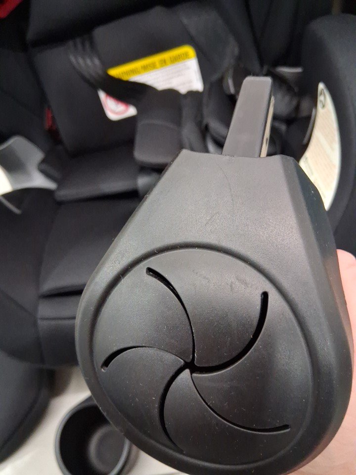 There is a small amount of dirt on the seat cover and some faint scratches on the cup holder indicating previous use (see photos)