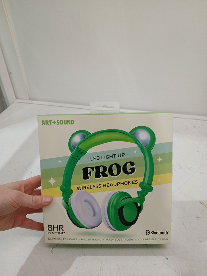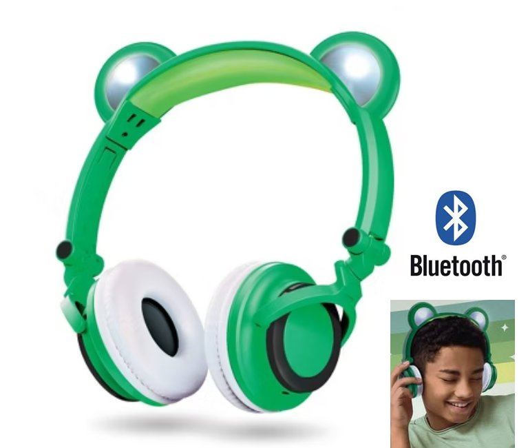 ART+SOUND LED Light Up Frog Bluetooth Wireless / Wired Headphones with Built-In Microphone - green