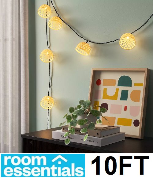 Room Essentials Woven Shaded LED Lantern String Lights with Clear Bulbs - 10-LIGHT - 10FT