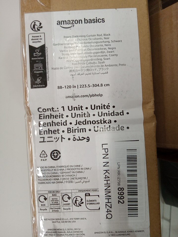 AMAZON BASICS ADJUSTABLE ROOM-DARKENING CURTAIN ROD - 88" to 120" - BLACK