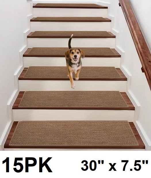15pk BONACA Linen non slip Stair Treads - 30" x 7.5" - brown