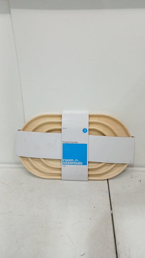 3pc Room Essentials decorative oval Melamine Trays - natural wood