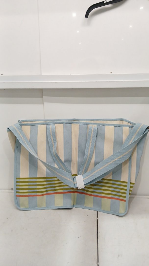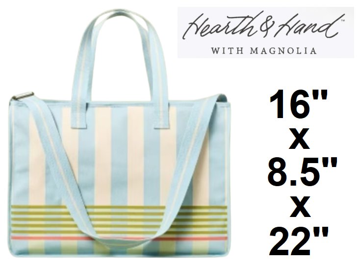 hearth and hand with magnolia cross stripe canvas carry-all tote bag - 22" x 16" x 8.5" - blue/green/natural