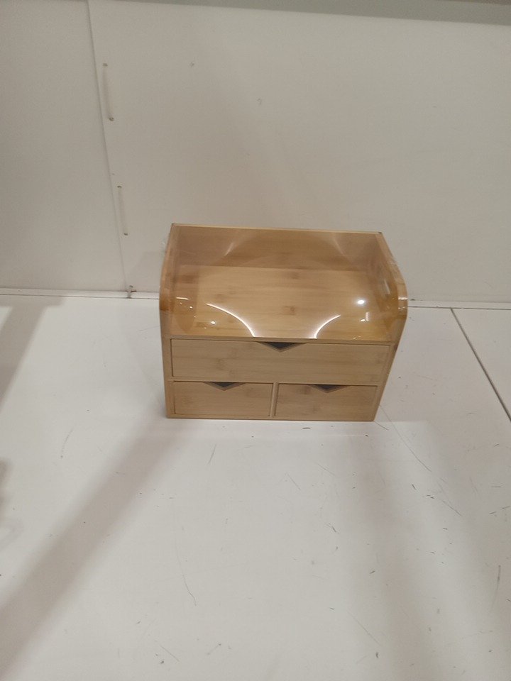 hacaroa 3 tier bamboo desktop organizer with drawers - 12.5" x 6.8" x 9" - beige