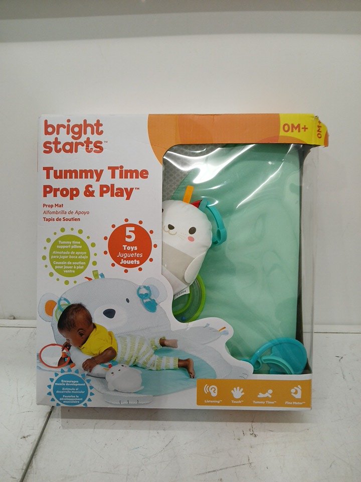 Bright Starts Tummy Time Prop & Play Baby Activity Mat with Support Pillow & Taggies - Newborn and up - 35" x 29.5" - Polar Bear (MODEL:10841-3)