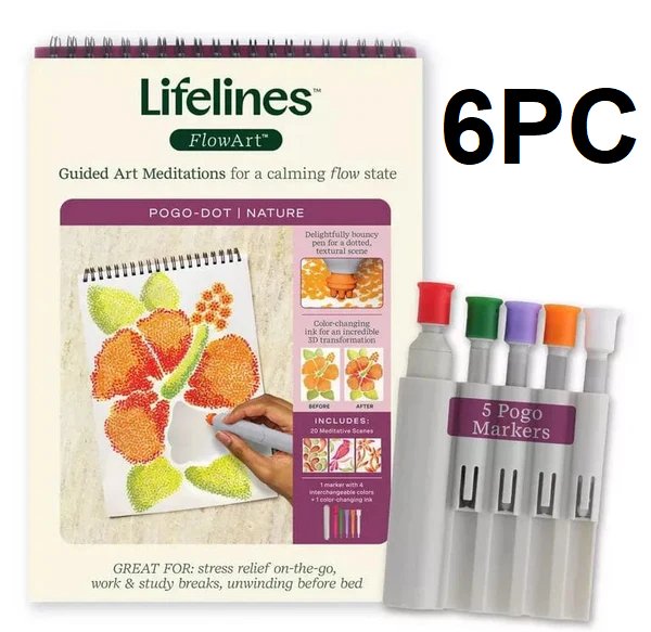 6PC LIFELINES FlowArt Pogo Dot COLORING BOOK WITH MARKERS - Nature